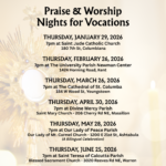- Praise and Worship Nights for Vocations – Join us as we pray for an increase in vocations. For more information contact Fr. William Wainio in the Office of Church Vocations, wwainio@youngstowndiocese.org.