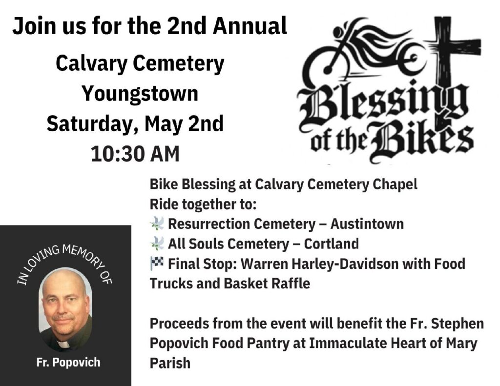 Established in 1885, Calvary Cemetery holds a significant place in Youngstown’s history, offering a glimpse into a time when life in the city was markedly different. Join us for a tour starting at our Chapel at 12:00pm on Friday, August 23, 2024. Light refreshments will be available. For more information, please call (330) 792-4721.